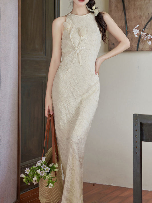 Light Green Burnout Print Cap Sleeve Cheongsam Dress