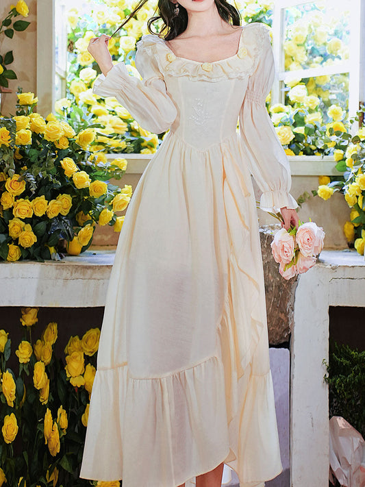 Apricot Square Neck Ruffle Corset Vintage Fairy Dress