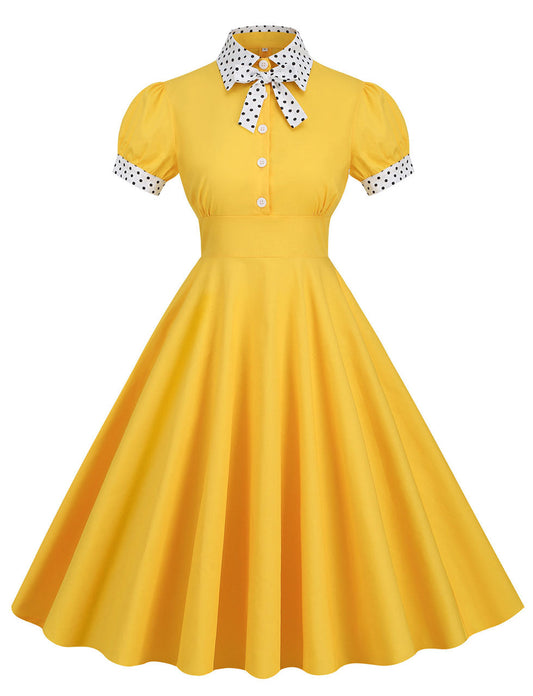 Yellow Pikachu Inspired Pokemon Swing Vintage 1950S Dress with Headband