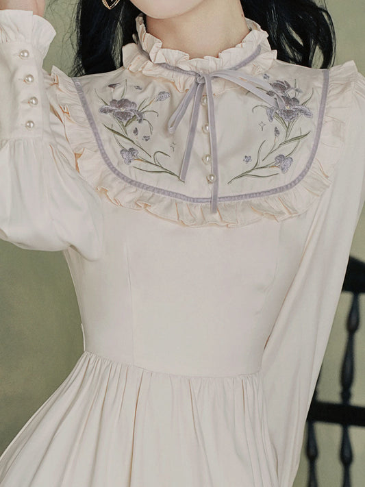 White Frilled Collar Cottagecore Long Sleeve Vintage 1950S Swing Dress
