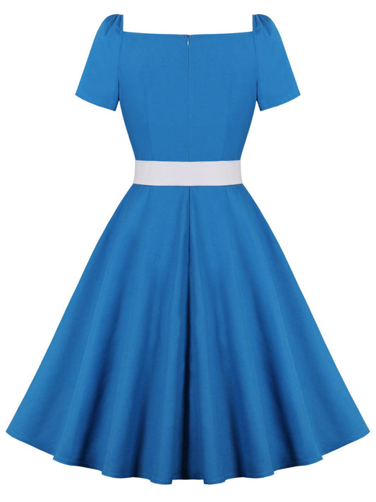 Klein Blue Vintage Square Collar 1950S Vintage Dress