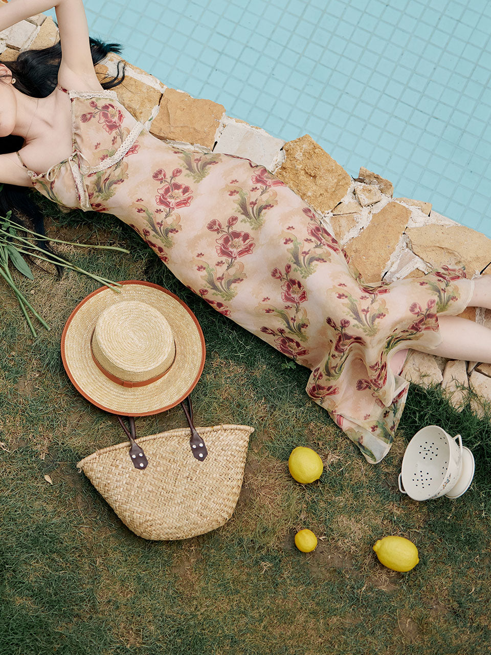 2PS Brown Spaghetti Strap Tropical Pattern Holiday Dress With White Long Sleeve Cardigan