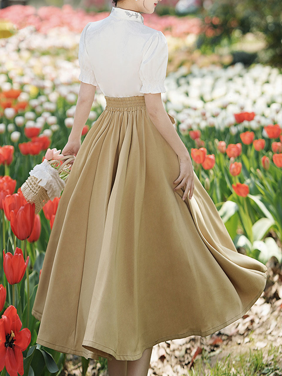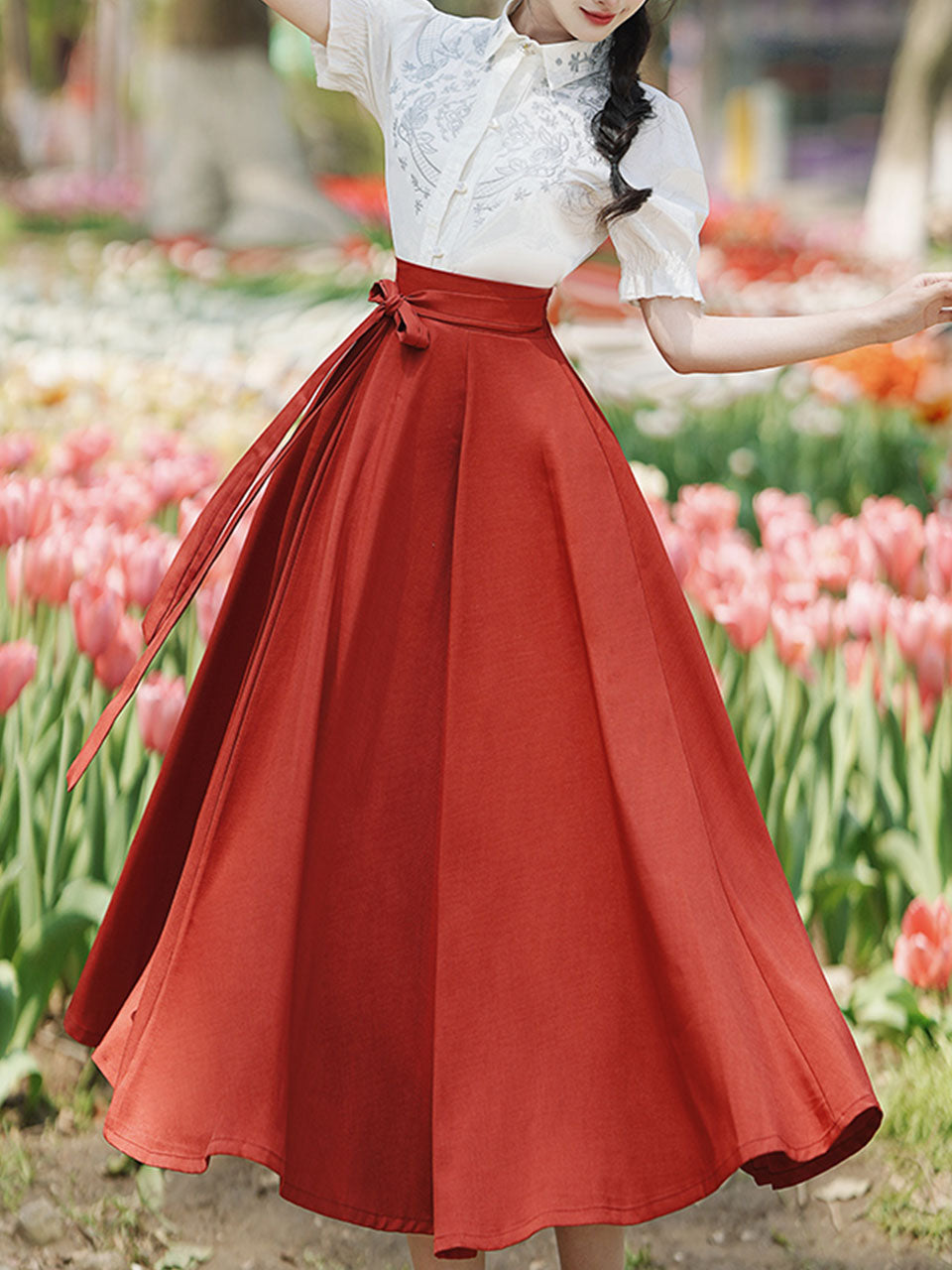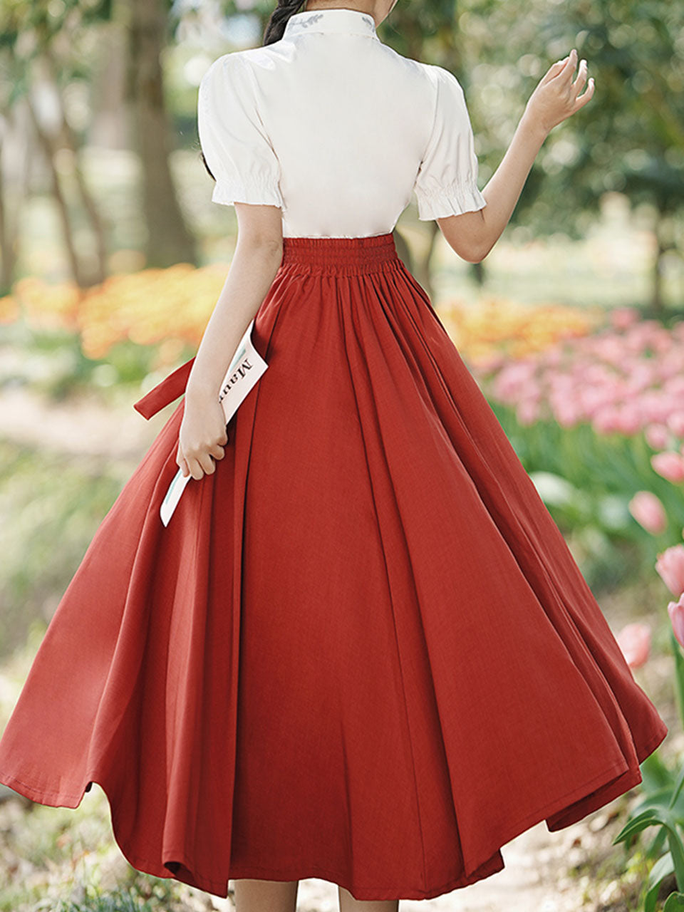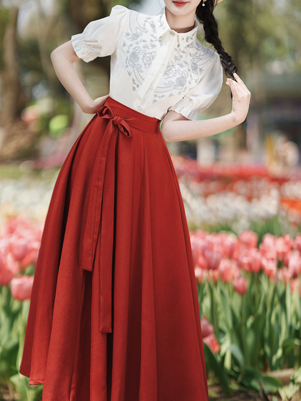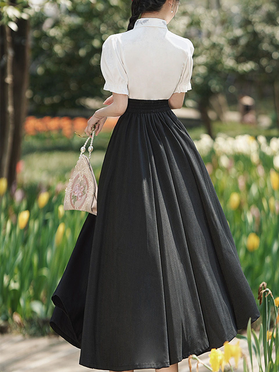 Baby Blue 1950S Vintage Embroidered Short Sleeve Shirt And Swing Skirt Set