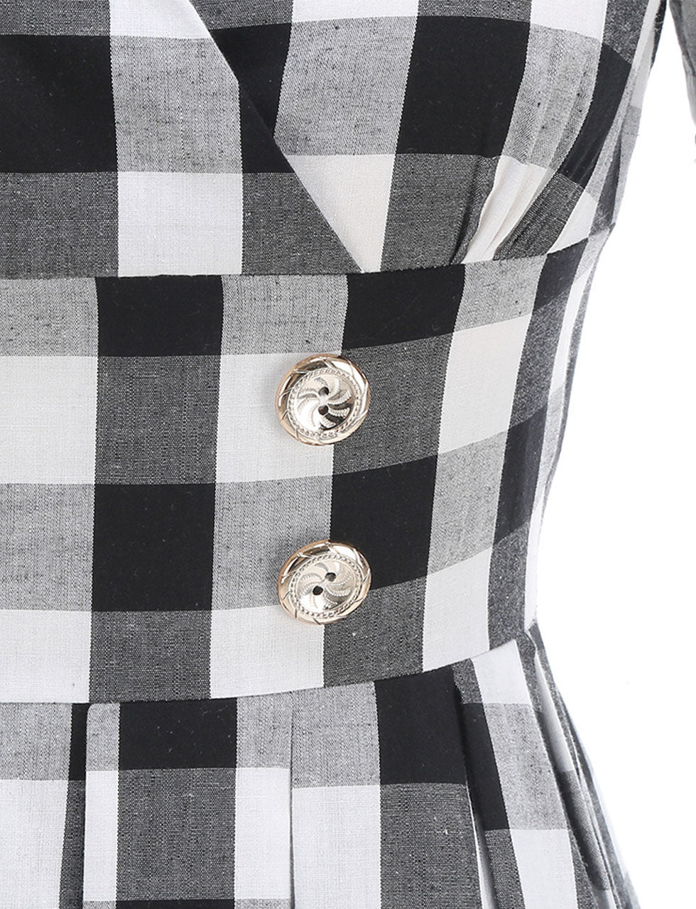 Black V Neck Plaid Audrey Hepburn Style Cocktail Swing Dress
