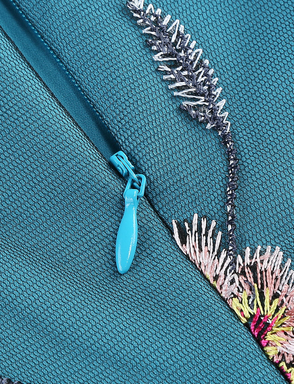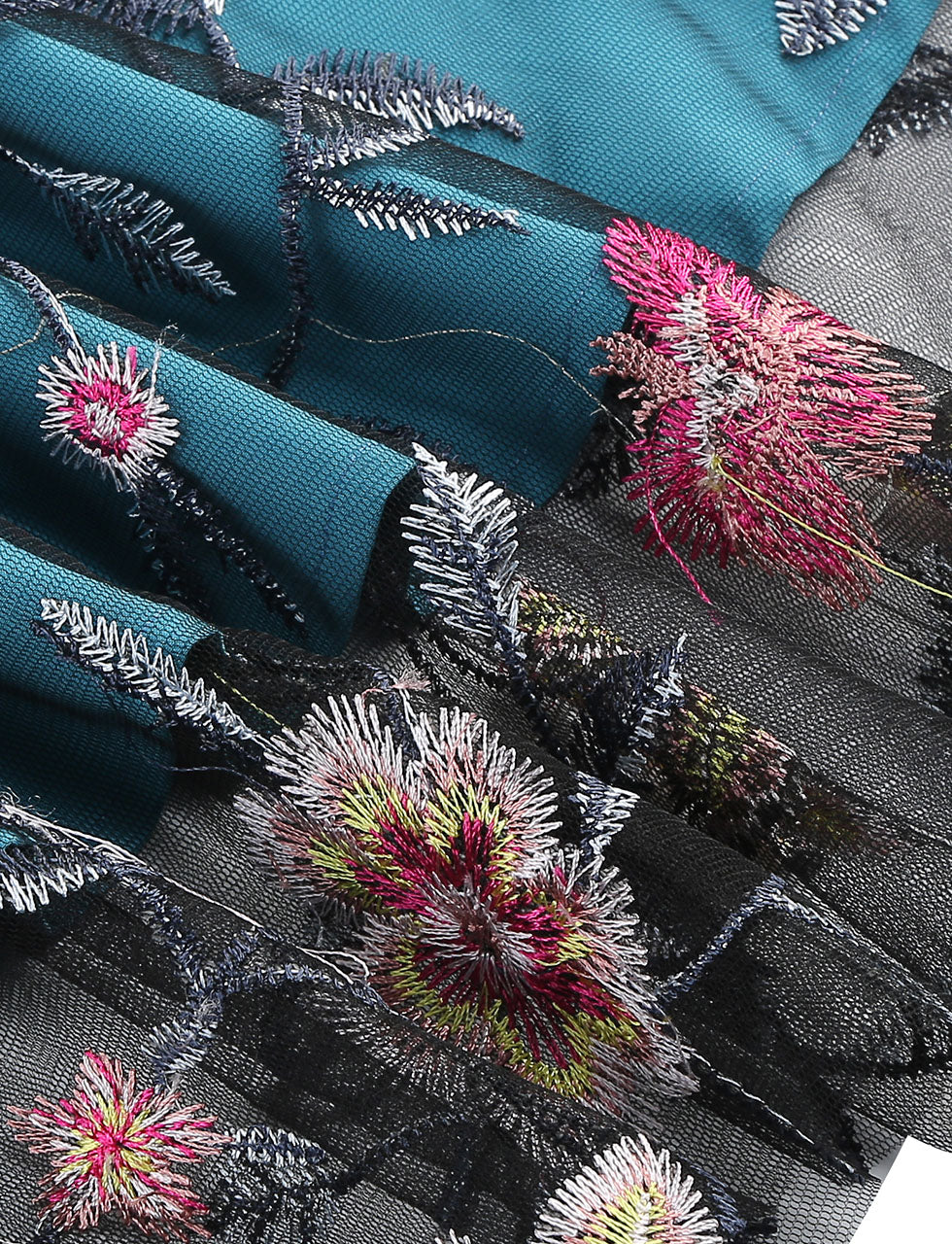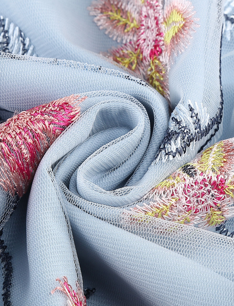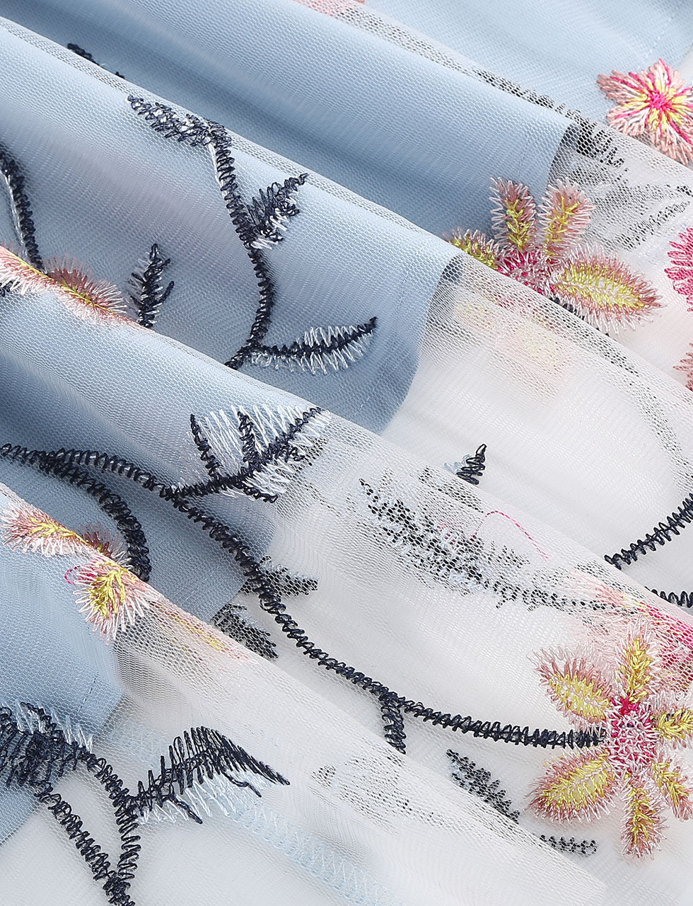 Lake Blue Semi Mesh Rose Embroidered Short Sleeve 50S Swing Dress