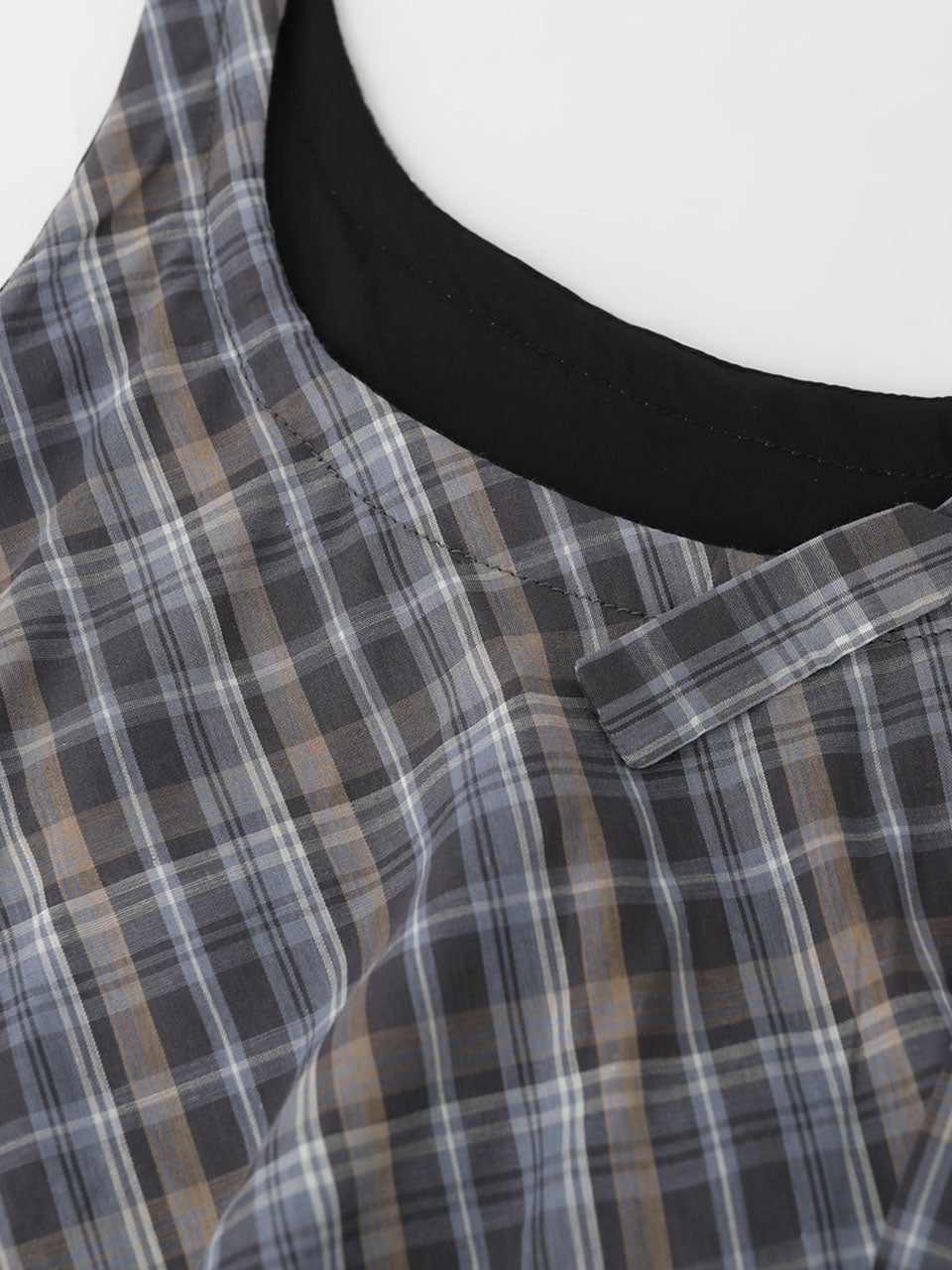 Navy Retro Plaid Crew Neck Sleeveless Irregular Hem Vintage Dress