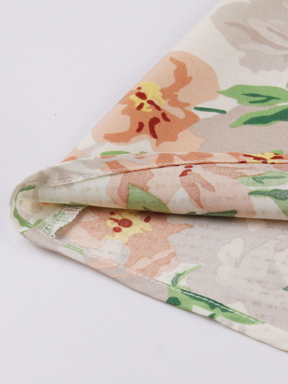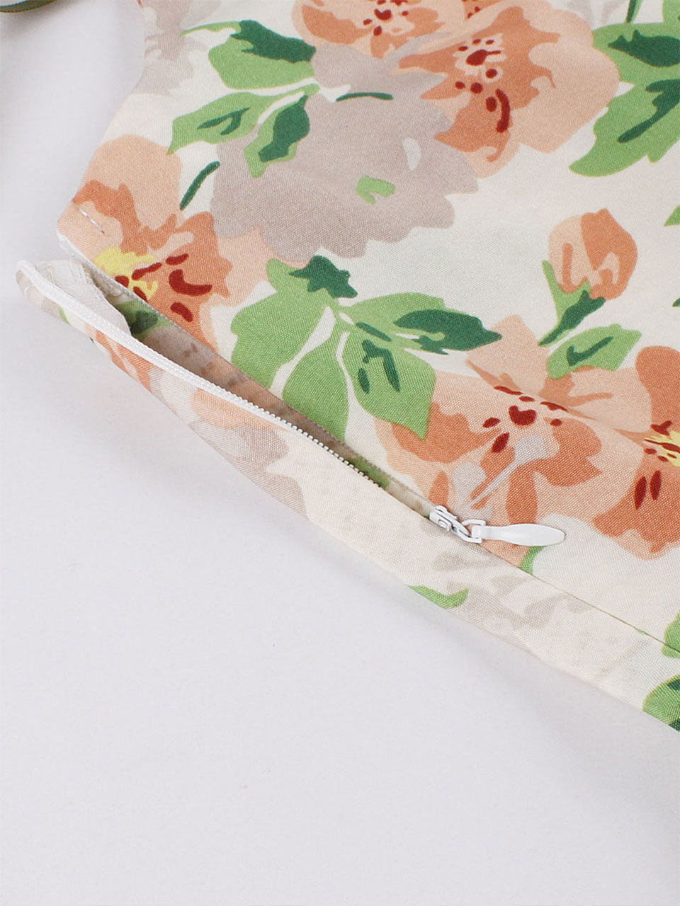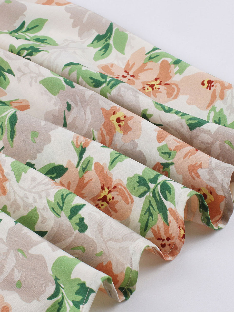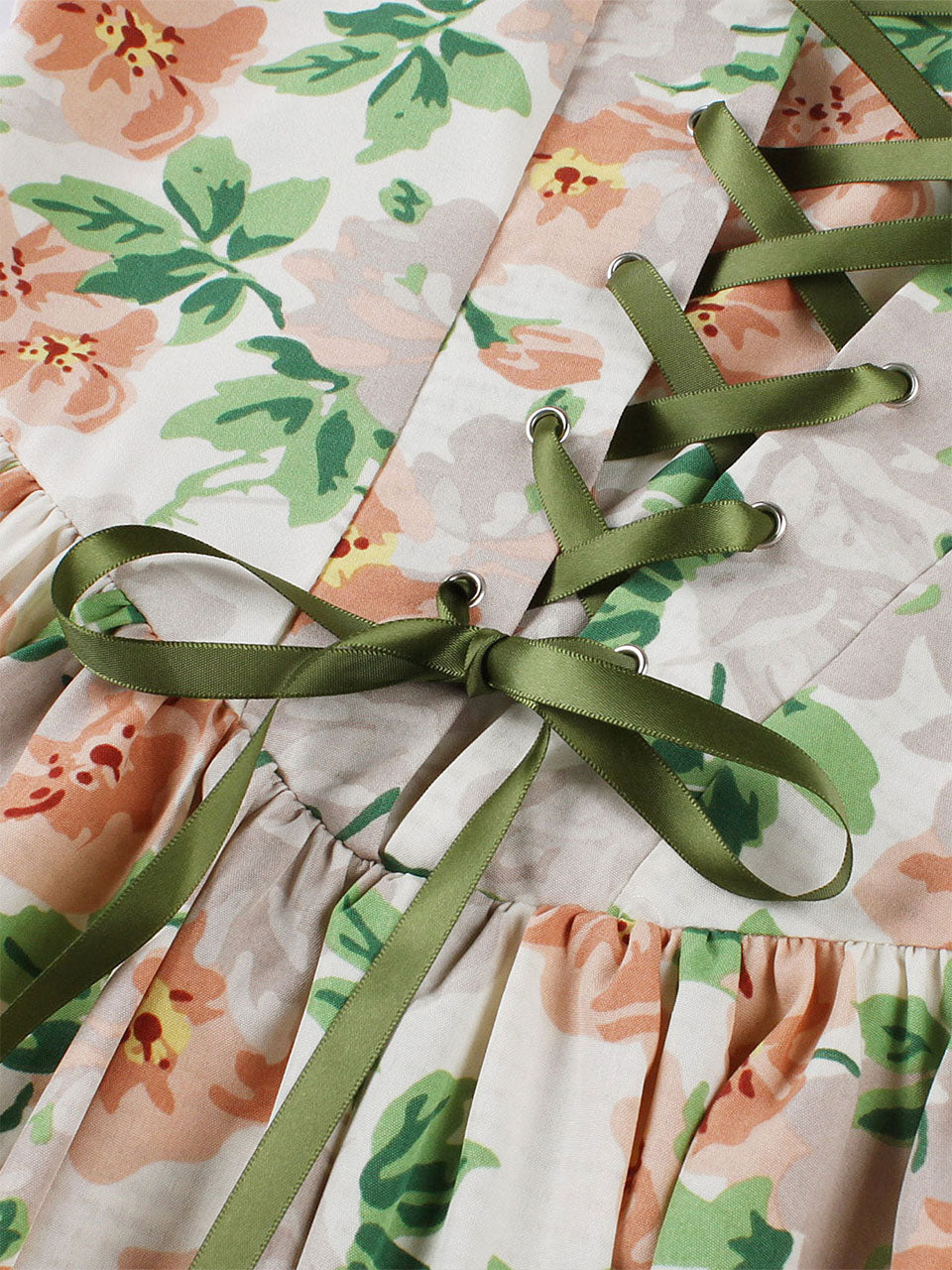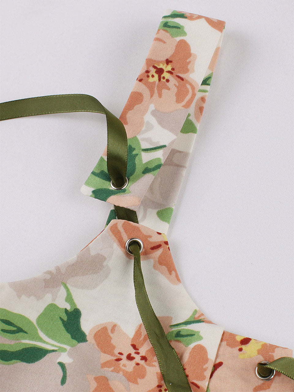 Pink Floral Print Lace-up Sleeveless 1950s Vintage Party Dress