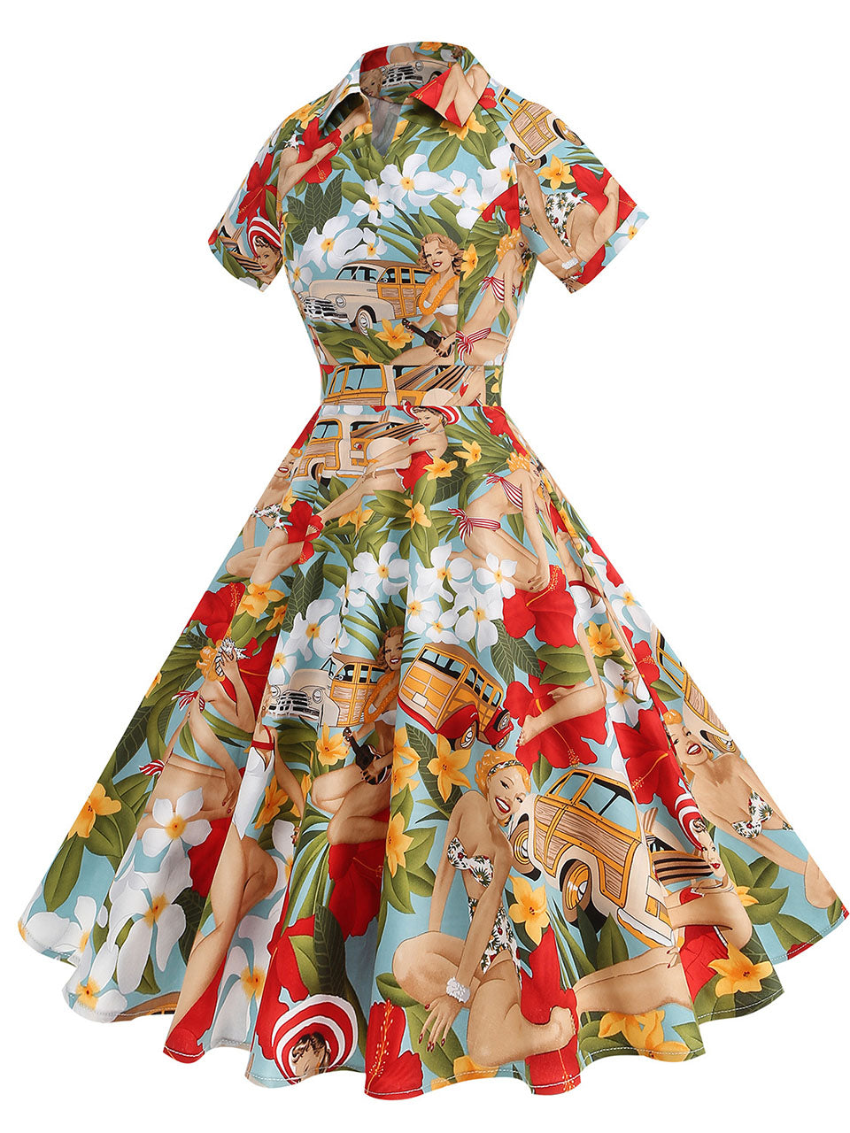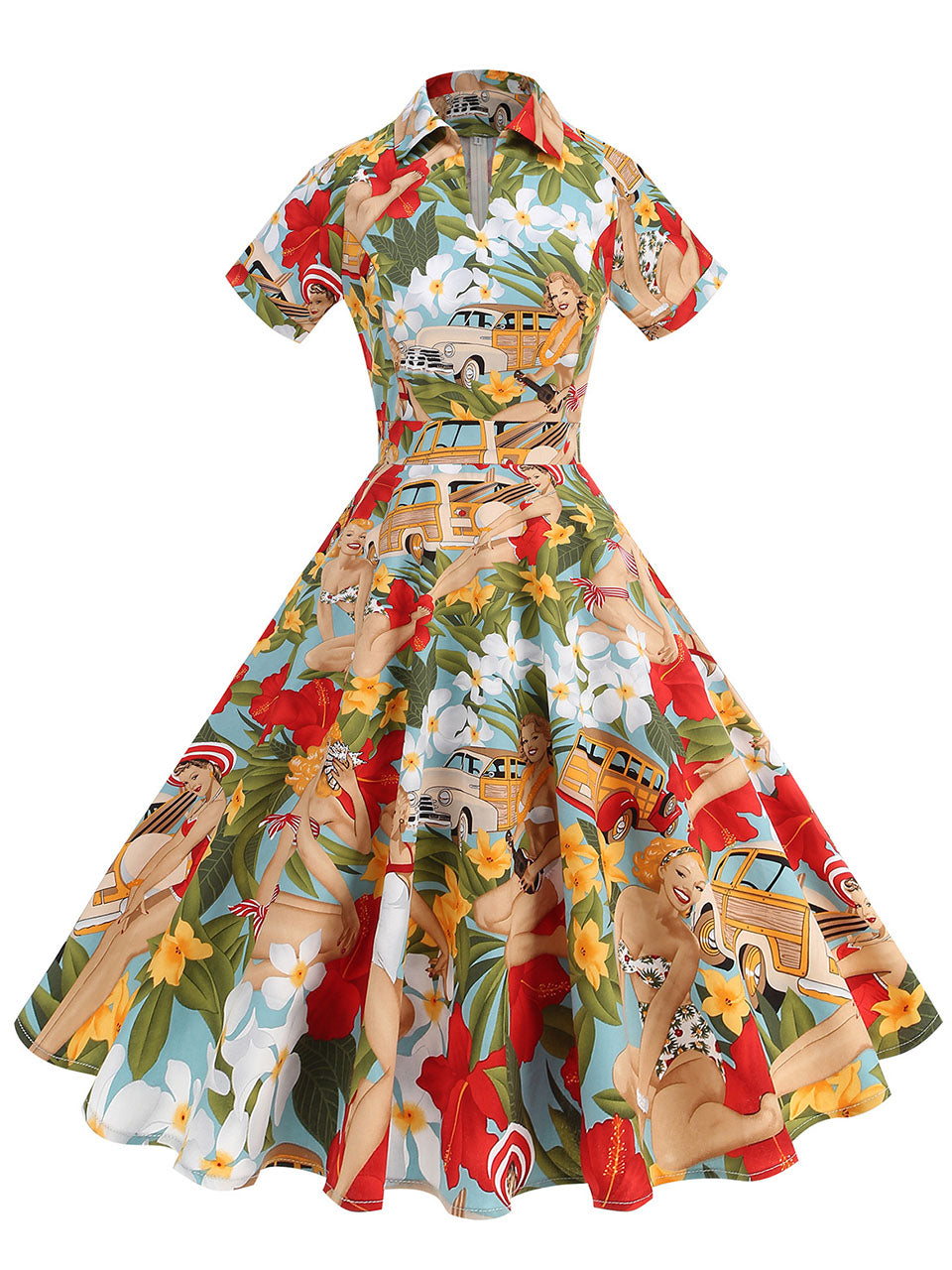 Red Polka Dots V Neck Short Sleeve Swing Vintage 1950S Dress