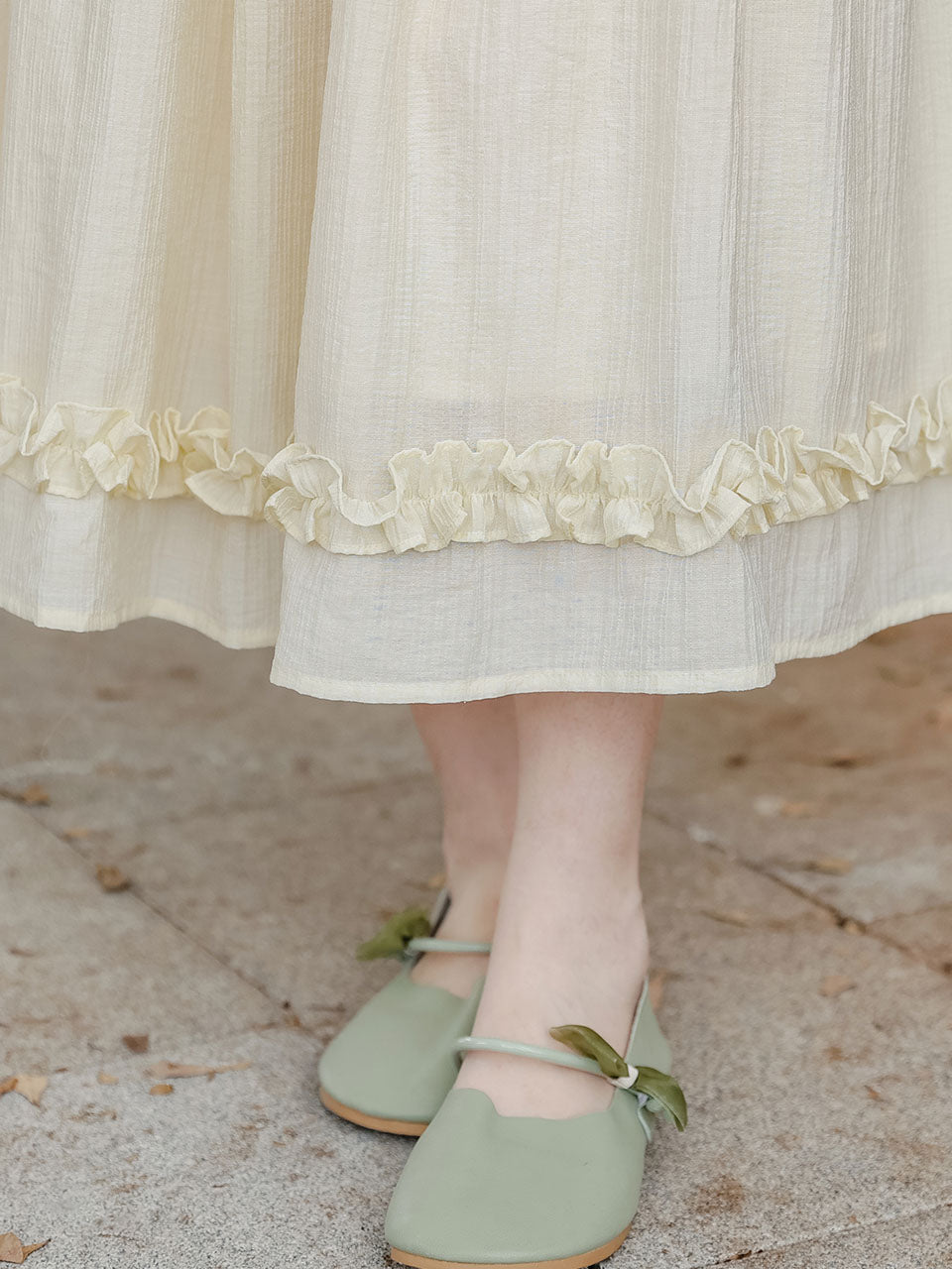 Apricot V Neck Floral Ruffles Princess Puff Sleeve Vintage Dress